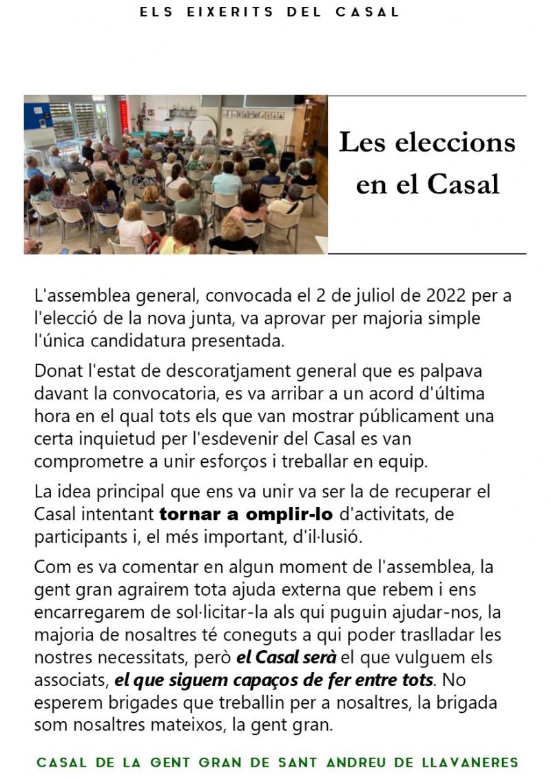 Som una entitat sense ànim de lucre que dinamitza l'activitat en el Casal de la Gent Gran de Llavaneres.