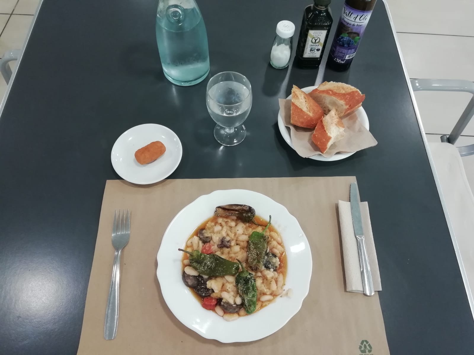 Primer: saltejat de mongetes amb pebrot, botifarra negra i xistorra. Segon: Conill al forn. Postre: Reim blanc de la verema d'enguany. TOT Deliciós!